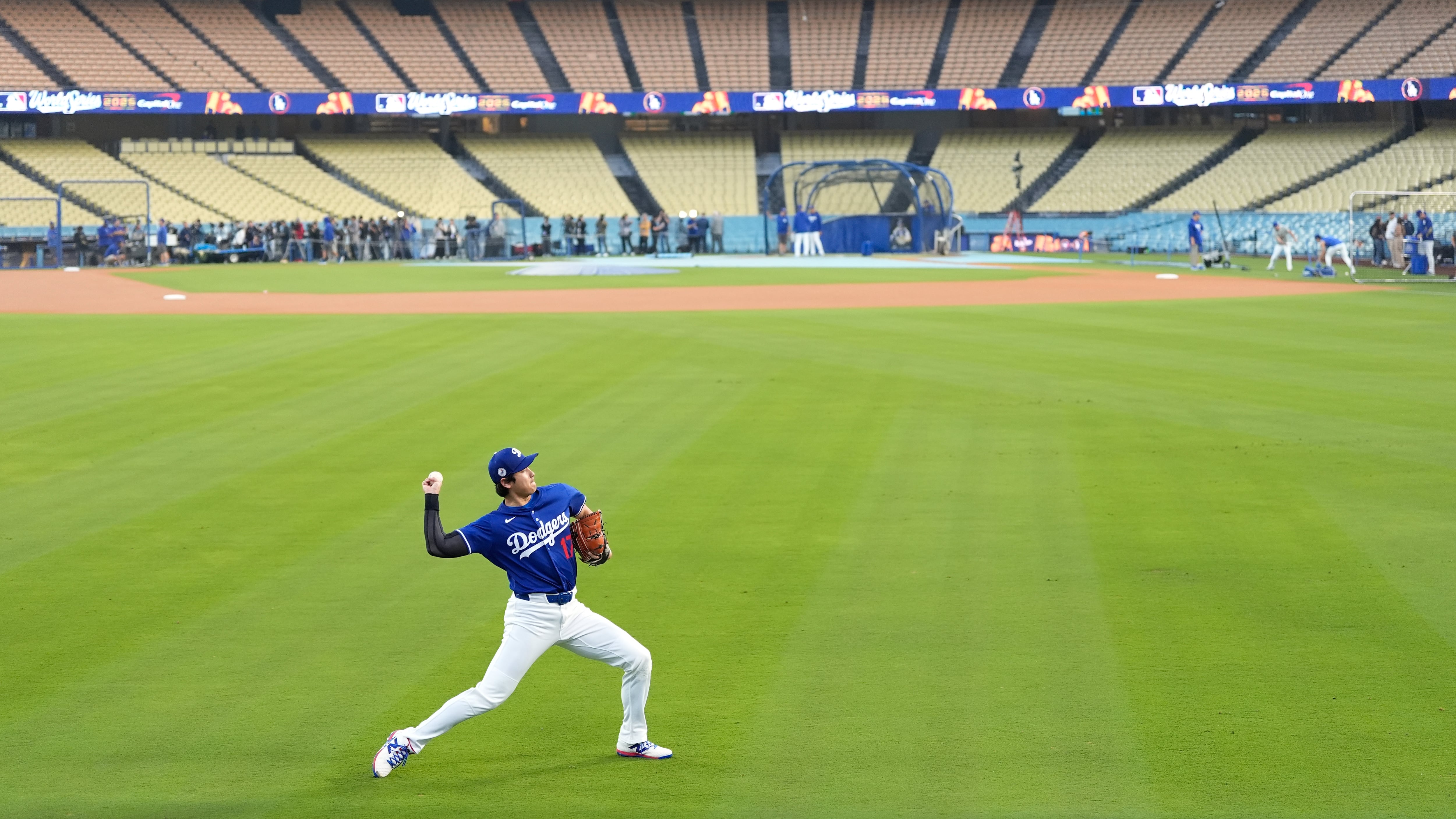 Blue Jays Dodgers World Series Baseball Los Angeles Dodgers' Shohei Ohtani works out ahead of Game 3 of the 2025 World Series against the Toronto Blue Jays in Los Angeles, Sunday, Oct. 26, 2025. (AP Photo/Ashley Landis) (Ashley Landis/AP)